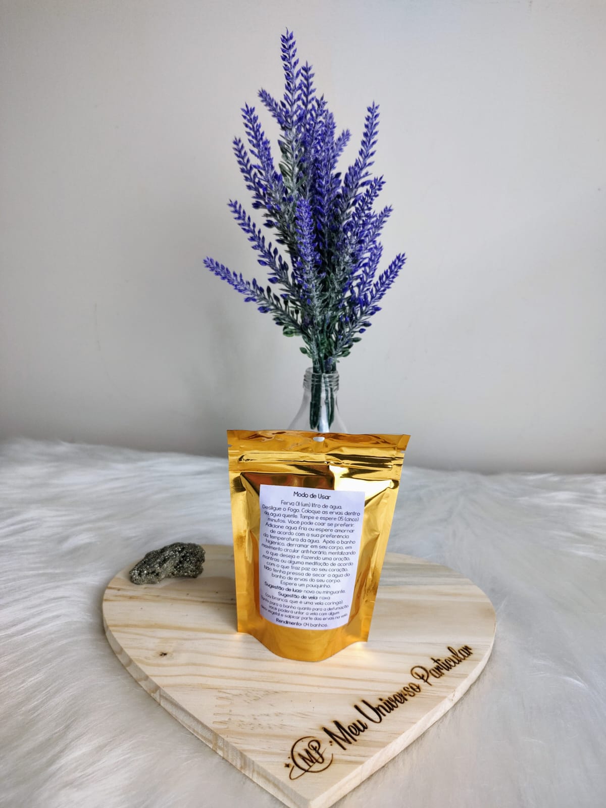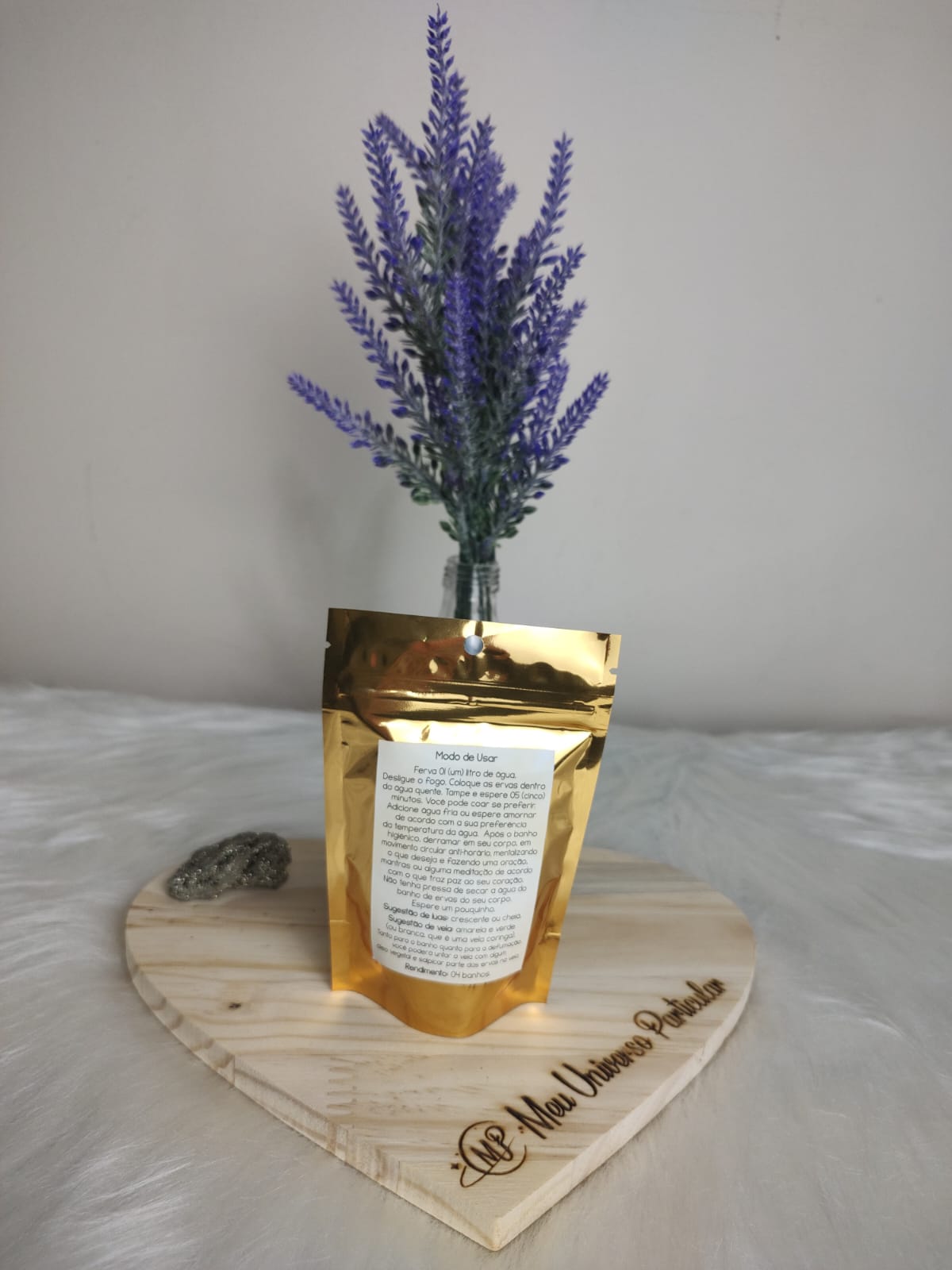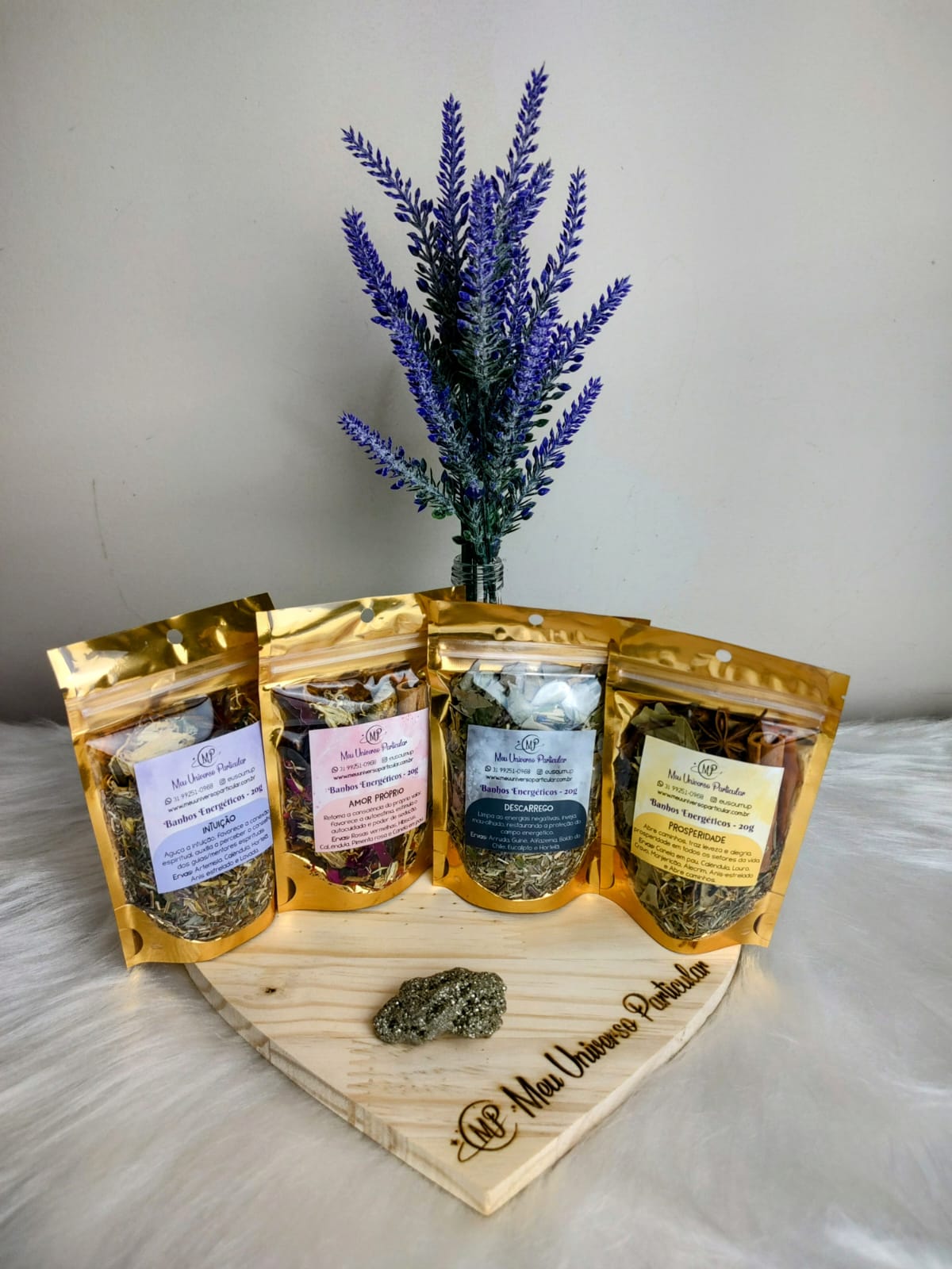Esse lindo kit contém 04 (quatro) pacotinhos de banhos energéticos, com 20 gramas cada. Rende, no mínimo, quatro banhos.