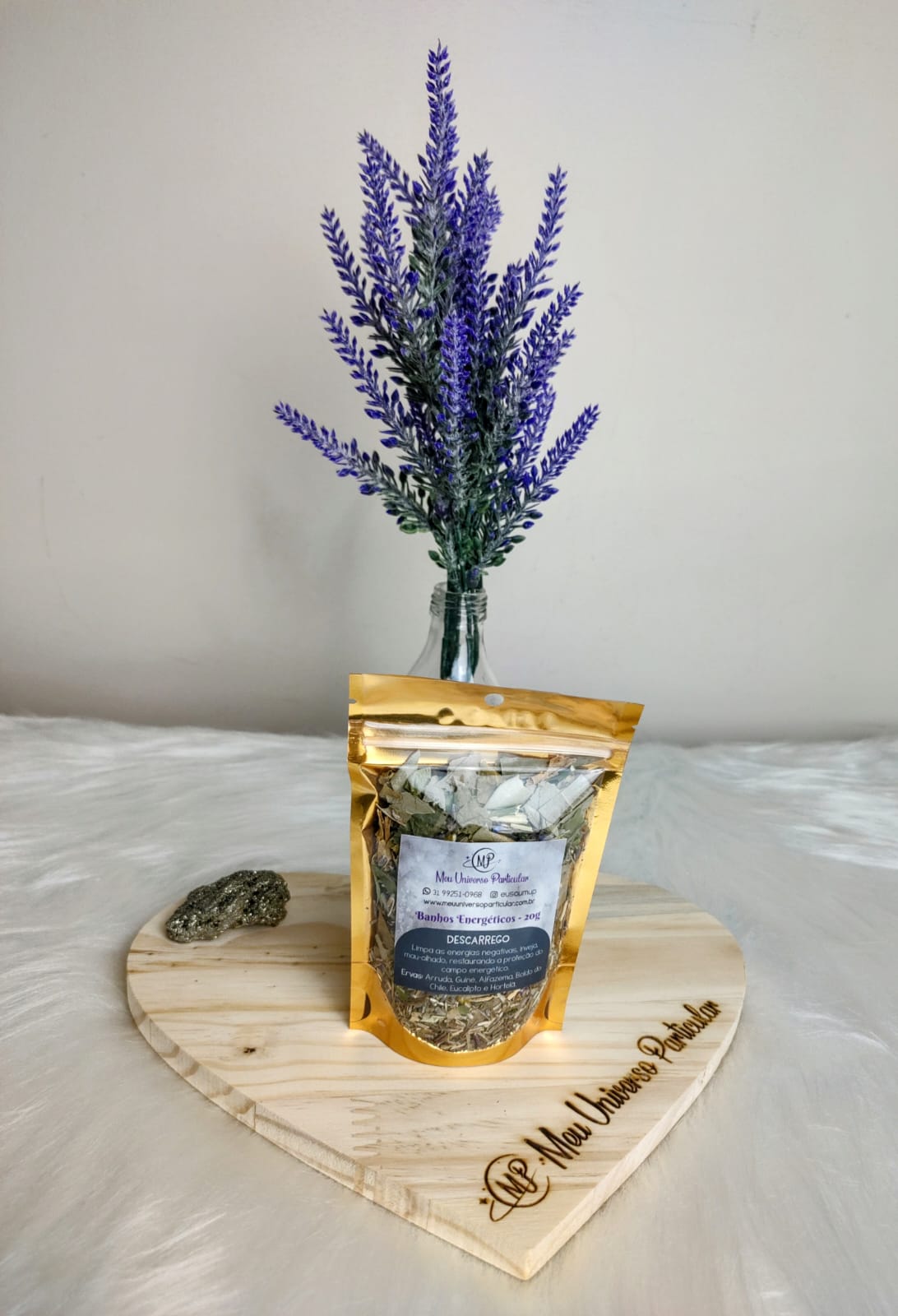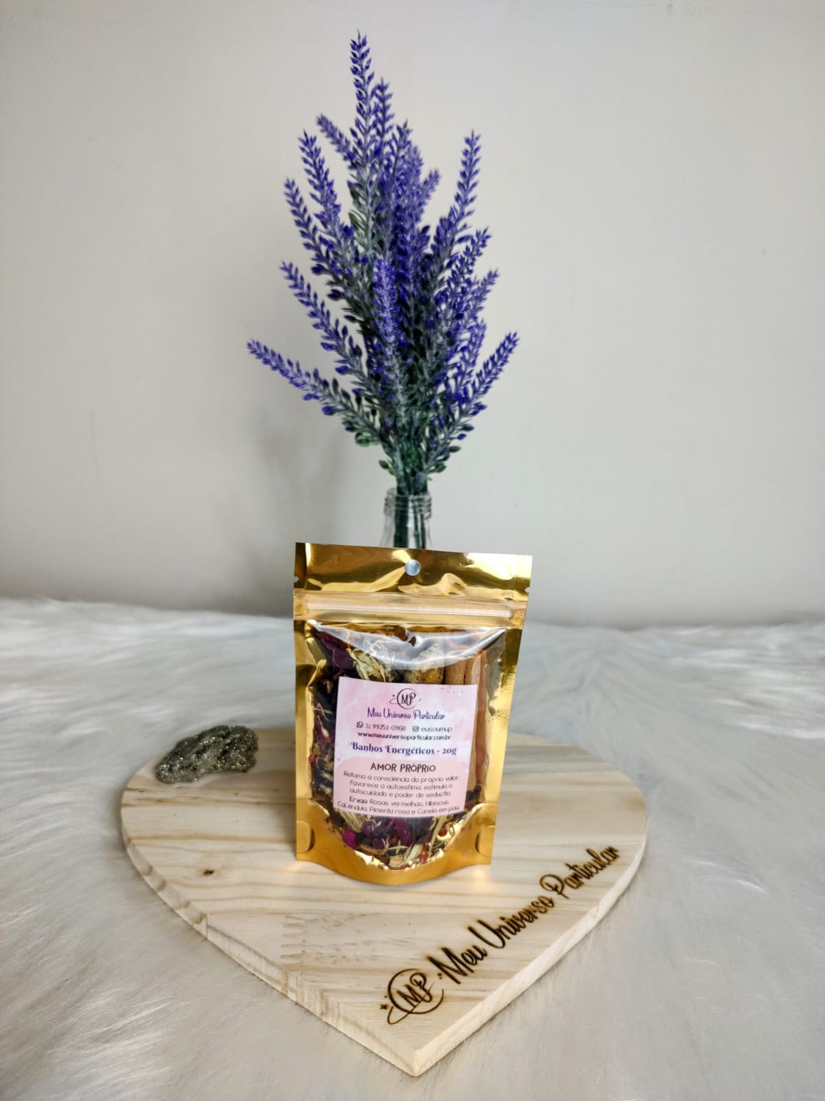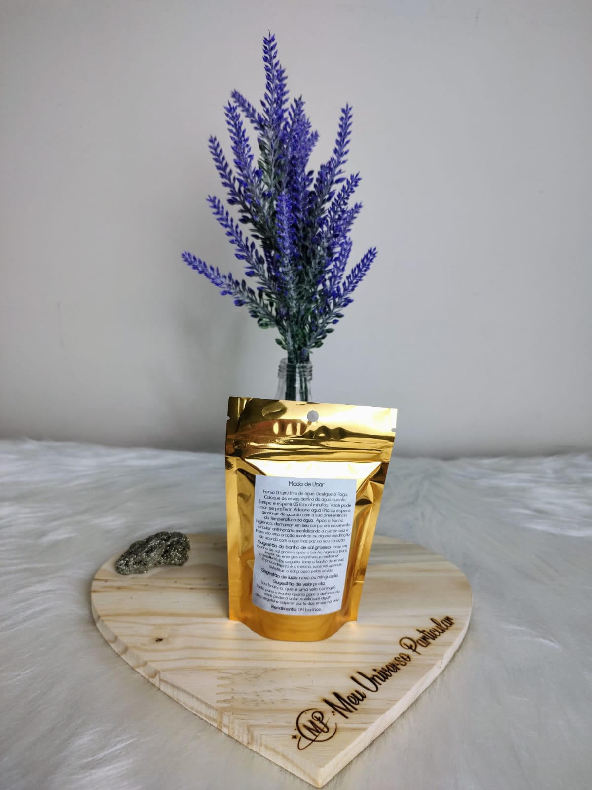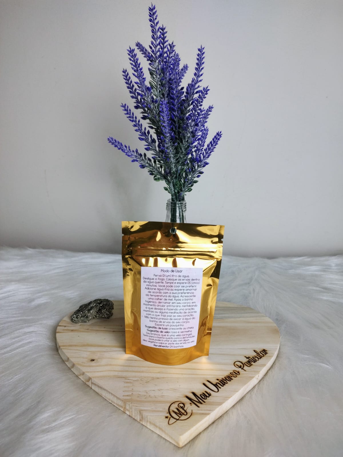 Esse lindo kit contém 04 (quatro) pacotinhos de banhos energéticos, com 20 gramas cada. Rende, no mínimo, quatro banhos.